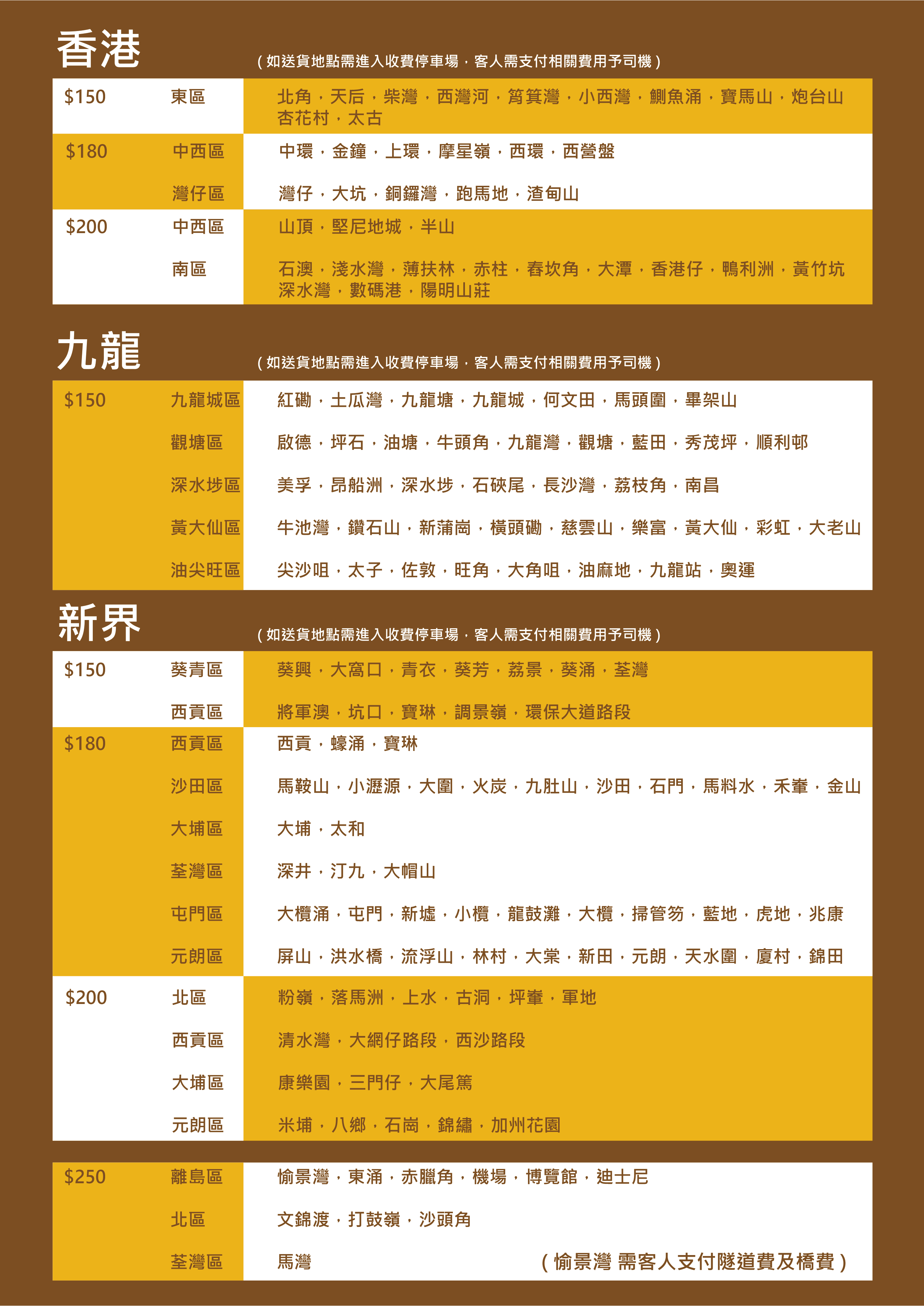 (如送貨地點需進入收費停車場,客人需支付相關費用予司機)